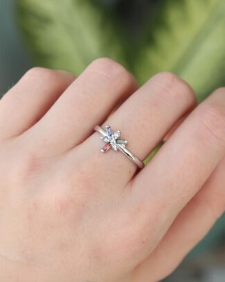 Pirinç Gümüş Renk Ayarlanabilir Renkli Zirkon Taşlı Yusufçuk Yüzük