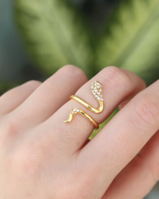 Pirinç Gold Renk Ayarlanabilir Zirkon Taşlı Yılan Yüzük