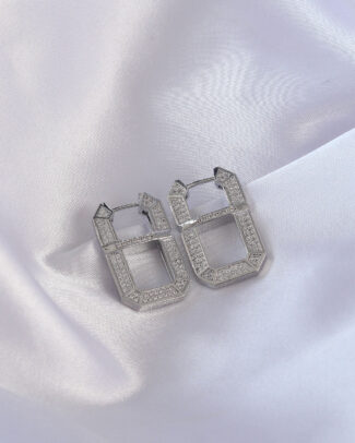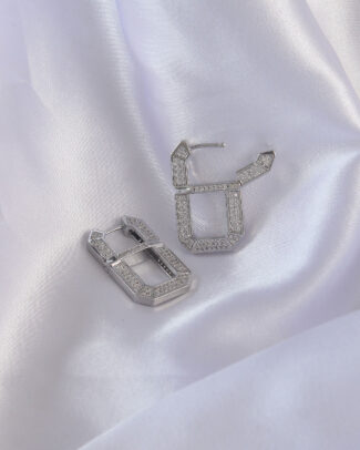 Vip Seri Pirinç Gümüş Renk Zirkon Taşlı Serenay Küpesi