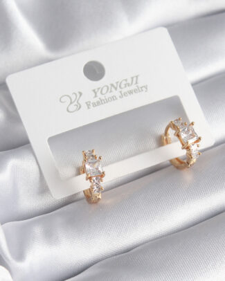 Pirinç Gümüş Renk Kare Zirkon Taşlı Kadın Küpe