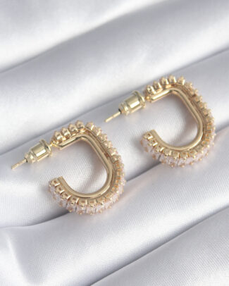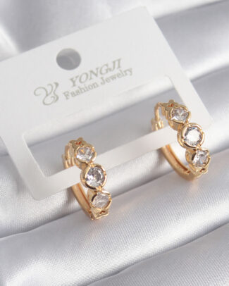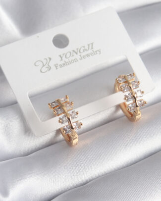 Pirinç Gold Renk Zirkon Taşlı Kadın Küpe