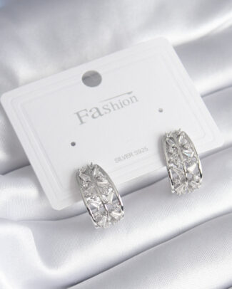 Pirinç Gümüş Renk Zirkon Taşlı Kadın Küpe