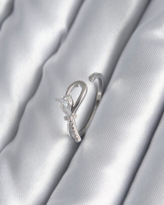 Pirinç Gümüş Renk Zirkon Taş Detay Kurdele Model Kadın Yüzük