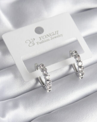 Pirinç Gümüş Renk Zirkon Taşlı Halka Model Kadın Küpe