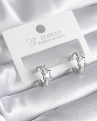 Pirinç Gümüş Renk Zirkon Taşlı Kadın Küpe