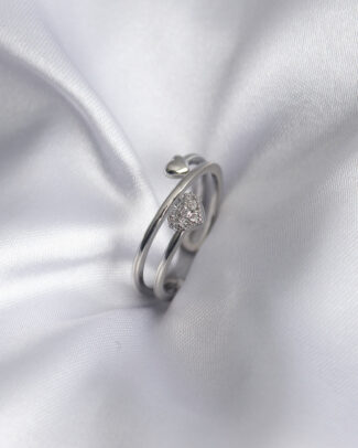 Pirinç Gümüş Renk Zirkon Taş Detay Kalp Model Kadın Yüzük