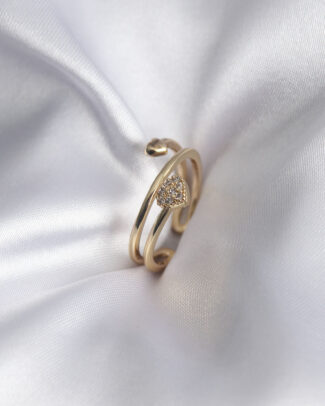 Pirinç Gold Renk Zirkon Taş Detay Kalp Model Kadın Yüzük
