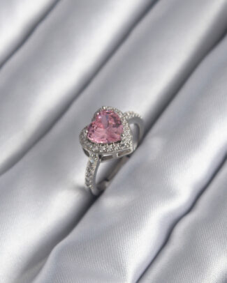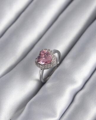 Gümüş Renk Pembe Zirkon Taşlı Charm Kalp Model Kadın Yüzük