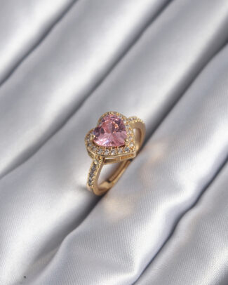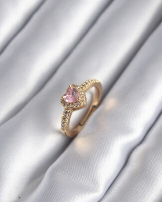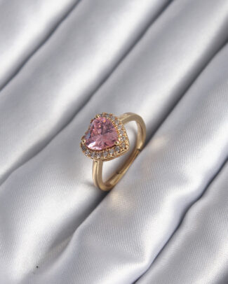 Pirinç Gold Renk Pembe Zirkon Taşlı Charm Kalp Model Kadın Yüzük
