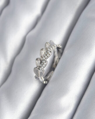 Pirinç Gümüş Renk Kalp Model İnci Detay Kadın Yüzük