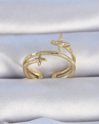 Pirinç Gold Renk Zirkon Taşlı Yıldız Model Kadın Yüzük
