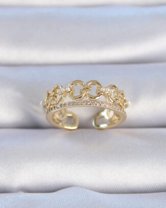 Pirinç Gold Renk Zirkon Taşlı İnci Detay Kadın Yüzük