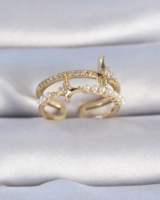Pirinç Gold Renk Zirkon Taşlı İnci Detay Kutup Yıldızı Model Kadın Yüzük