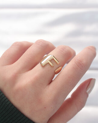 F Harfli Altın Renk Ayarlanabilir Yüzük