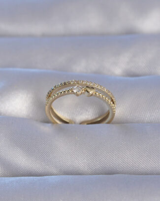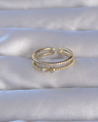 Pirinç Gold Renk Zirkon Taşlı Kalpli Su Yolu Model Ayarlanabilir Yüzük
