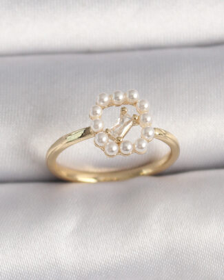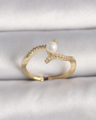 Pirinç Gold Renk Zirkon Taşlı İncili Ayarlanabilir Yüzük