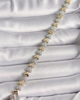 Pirinç Mix Renk Zirkon Taşlı Kalp Model VIP Seri Kadın Bileklik