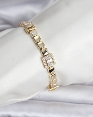 14K Gold Renk Kaplama Zirkon Taşlı Baget Model CM Kadın Bileklik
