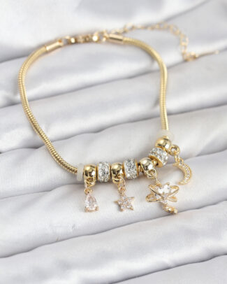 Pirinç Gold Renk Kalpli Model Charmlı Kadın Bileklik