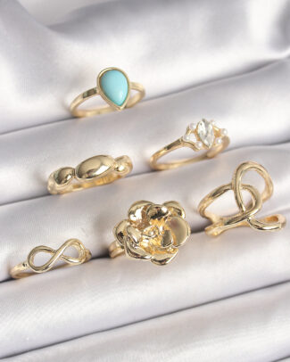 Pirinç Gold Renk Çiçek Model Model Sonsuzluk Zirkon Taş Detaylı 6’Lı Kadın Yüzük Seti