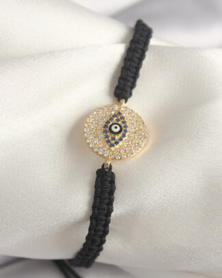 Pirinç Gold Renk Zirkon Taşlı Göz İşlemeli Figür Asansörlü Makrome Model Kadın Bileklik