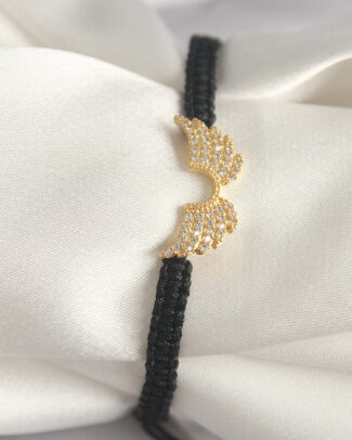 Pirinç Gold Renk Zirkon Taşlı Kanat Figür Asansörlü Makrome Model Kadın Bileklik