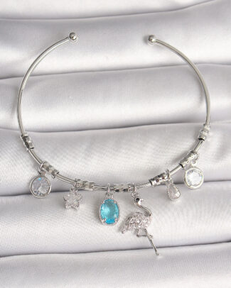 Pirinç Gümüş Renk Sallantı Zirkon Taşlı Filaminga Figür Charm Kadın Bileklik