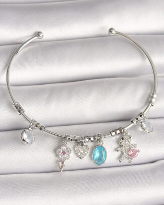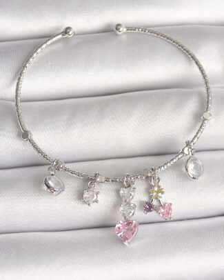Pirinç Gümüş Renk Sallantı Zirkon Taşlı Kalp Figür Charm Kadın Bileklik