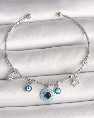 Pirinç Gümüş Renk Sallantı Zirkon Taşlı Nazar Boncuk Figür Charm Kadın Bileklik