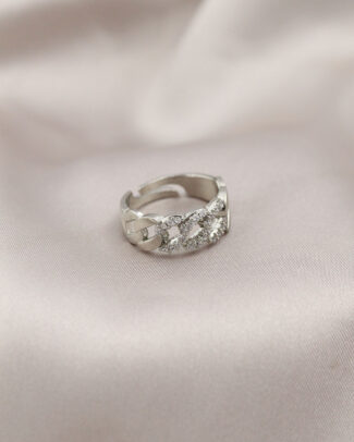 Gümüş Renk Metal Zincir Model Taşlı Kadın Yüzük