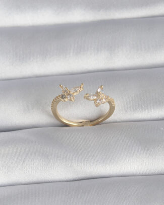 Pirinç Gold Renk Zirkon Taşlı Kelebek Model Kadın Yüzük