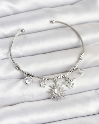 Güneş Charmlı Gümüş Renk Pirinç Kadın Bileklik