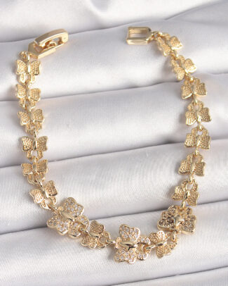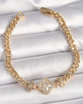 Pirinç Gold Renk Zirkon Taşlı Yonca Figür Zincir Model Kadın Bileklik