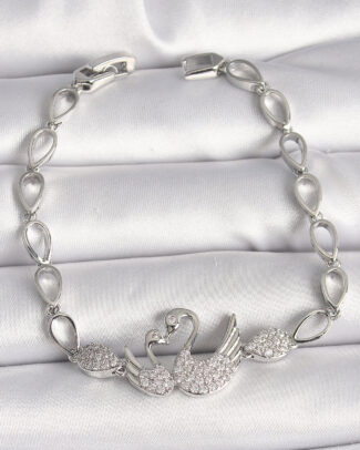 Pirinç Gümüş Renk Zirkon Taşlı Kuğu Figür Damla Zincir Model Kadın Bileklik