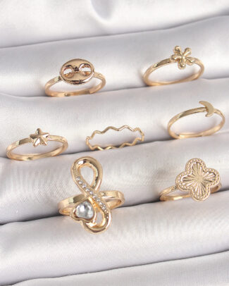 Pirinç Gold Renk Zirkon Taşlı Sonsuzluk Figür Yıldız Detay Kadın Yüzük Kombini