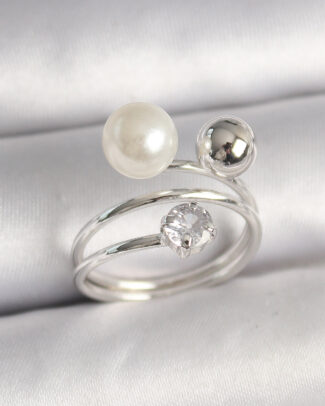 Pirinç Gümüş Renk Zirkon Taşlı Toplu İnci Model Kadın Yüzük