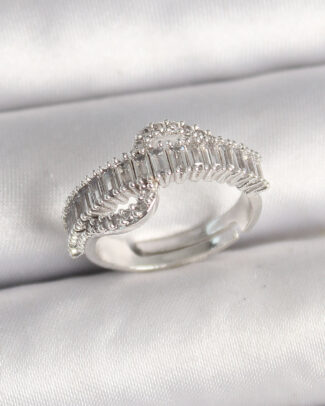 Pirinç Gümüş Renk Su Yolu Zirkon Taşlı Ayarlanabilir Model Kadın Yüzük