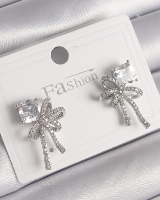 Pirinç Gümüş Renk Zirkon Taşlı Kurdele Model Kadın Küpe