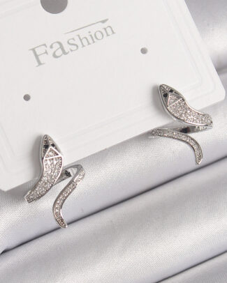 Pirinç Gümüş Renk Zirkon Taşlı Yılan Model Kadın Küpe