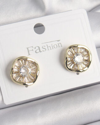 Pirinç Gold Renk Zirkon Taşlı Yonca Model Kadın Küpe