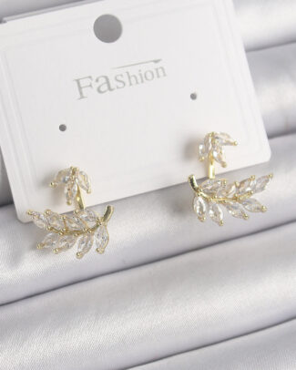 Pirinç Gold Renk Zirkon Taşlı Yaprak Model Kadın Küpe