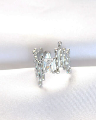 Sıralı Baget Taşlı Silver Renk Ayarlanabilir Yüzük