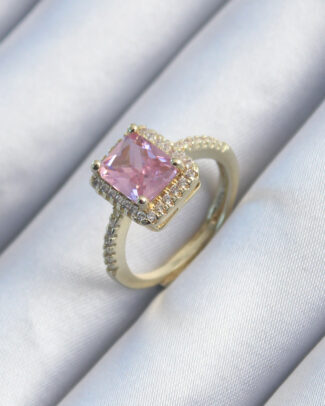 Pirinç Gold Renk Pembe Zirkon Taşlı Kadın Yüzük