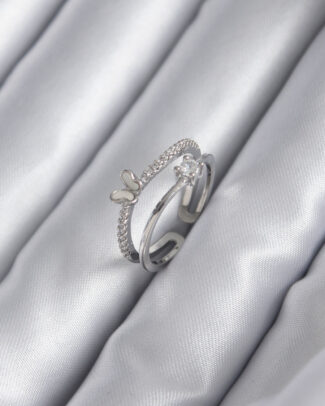 Pirinç Gümüş Renk Zirkon Taşlı Kelebek Model Kadın Yüzük
