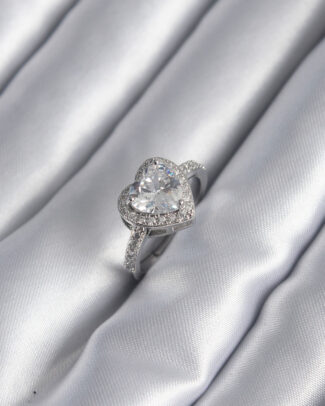 Pirinç Gümüş Renk Zirkon Taş Kalp Charm Model Kadın Yüzük