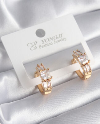 Pirinç Gold Renk Kare Zirkon Taşlı Kadın Küpe