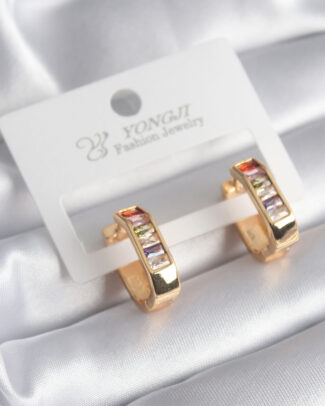 Pirinç Gold Renk Renkli Zirkon Taşlı Kadın Küpe