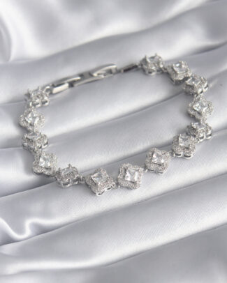 Pirinç Gümüş Renk Zirkon Taşlı Yonca Model VIP Seri Kadın Bileklik