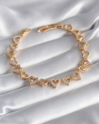 Pirinç Gold Renk Zirkon Taşlı Kalp Model VIP Seri Kadın Bileklik