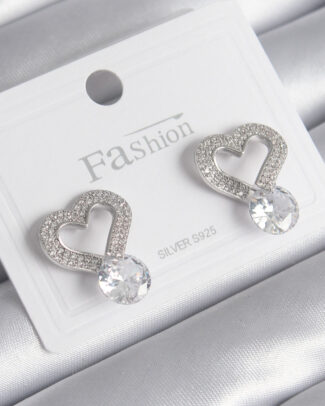 Pirinç Gümüş Renk Zirkon Taşlı Kalp Model Damla Zirkon Taş Detay Kadın Küpe